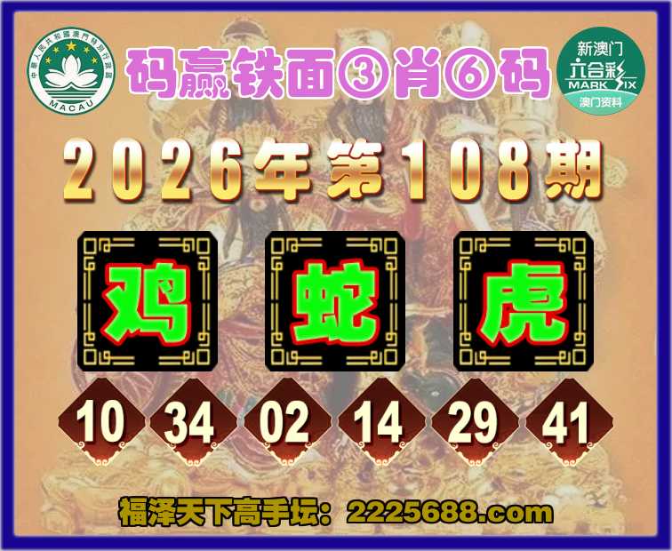 108期:《码赢铁面》 🚵‍♀️③肖⑥码🚵‍♀️【鸡蛇虎】开:狗45