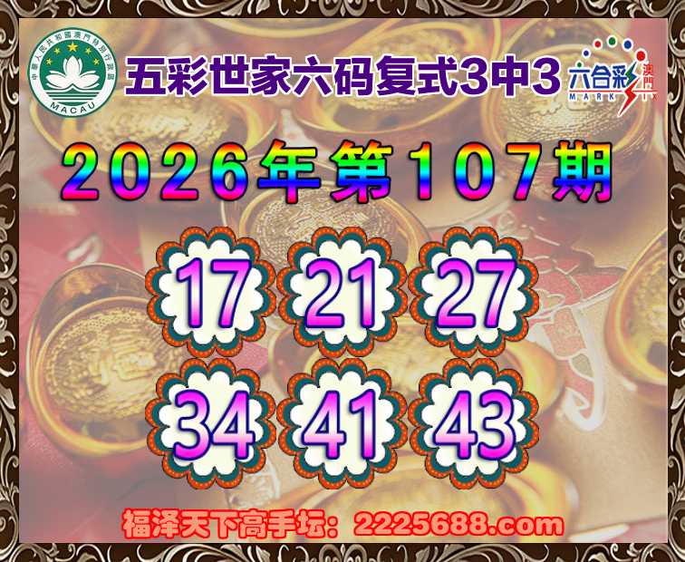 107期:《五彩世家》 ♥️六码复式3中3♥️