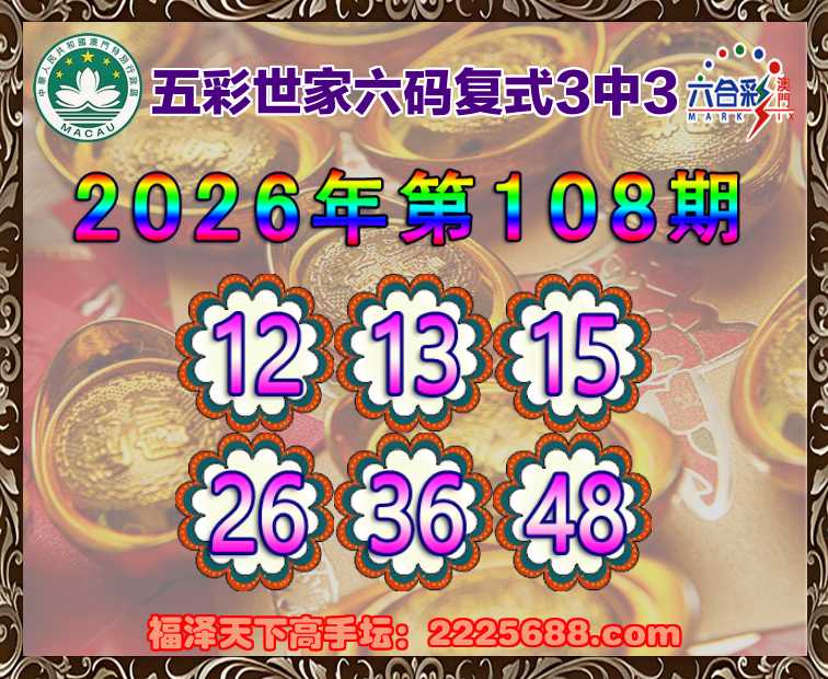 108期:《五彩世家》 ♥️六码复式3中3♥️